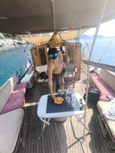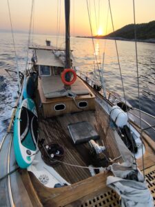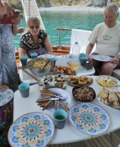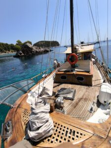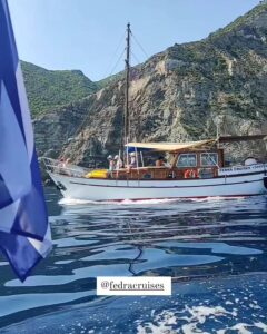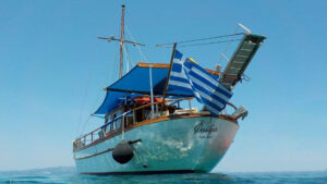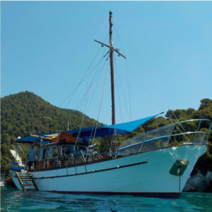 Fedra is a wooden traditional motor sailing boat at a length of 12m, width of 4,20m with 12 guests accommodation. Fasilities: Refrigerators-wc-tv-easy access to the sea by large gangway- Fedra offers majestic and tranquil sailing of the kind that can only be ensured by Greek traditional boat-makers Fedra was built in 1985 by Pachos Papastephanou and his son to be used solely for recreational purposes within their family.In 2004 she was rebuilt with a new engine Yanmar 240 hp , 4kw.generator and new electronic equipment. She later changed ownership and in 2015 we were fortunate to acquire Fedra. Since then, she has been in our care, maintained and treated as a member of our own family, to be enjoyed not only by us but also by you with friends or family.
